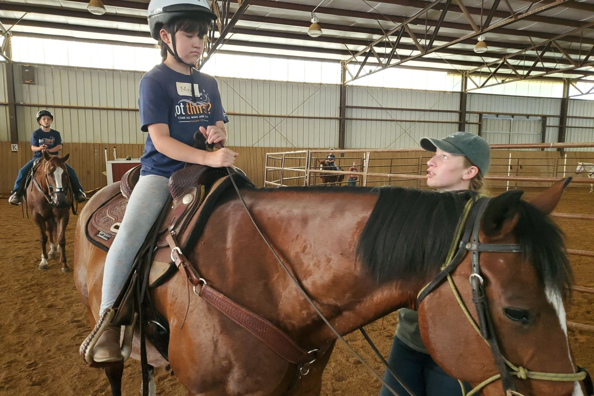 - Helmets are available and required for riders under 18 years of age or bring your own ASTM/SEI approved equine riding helmet.