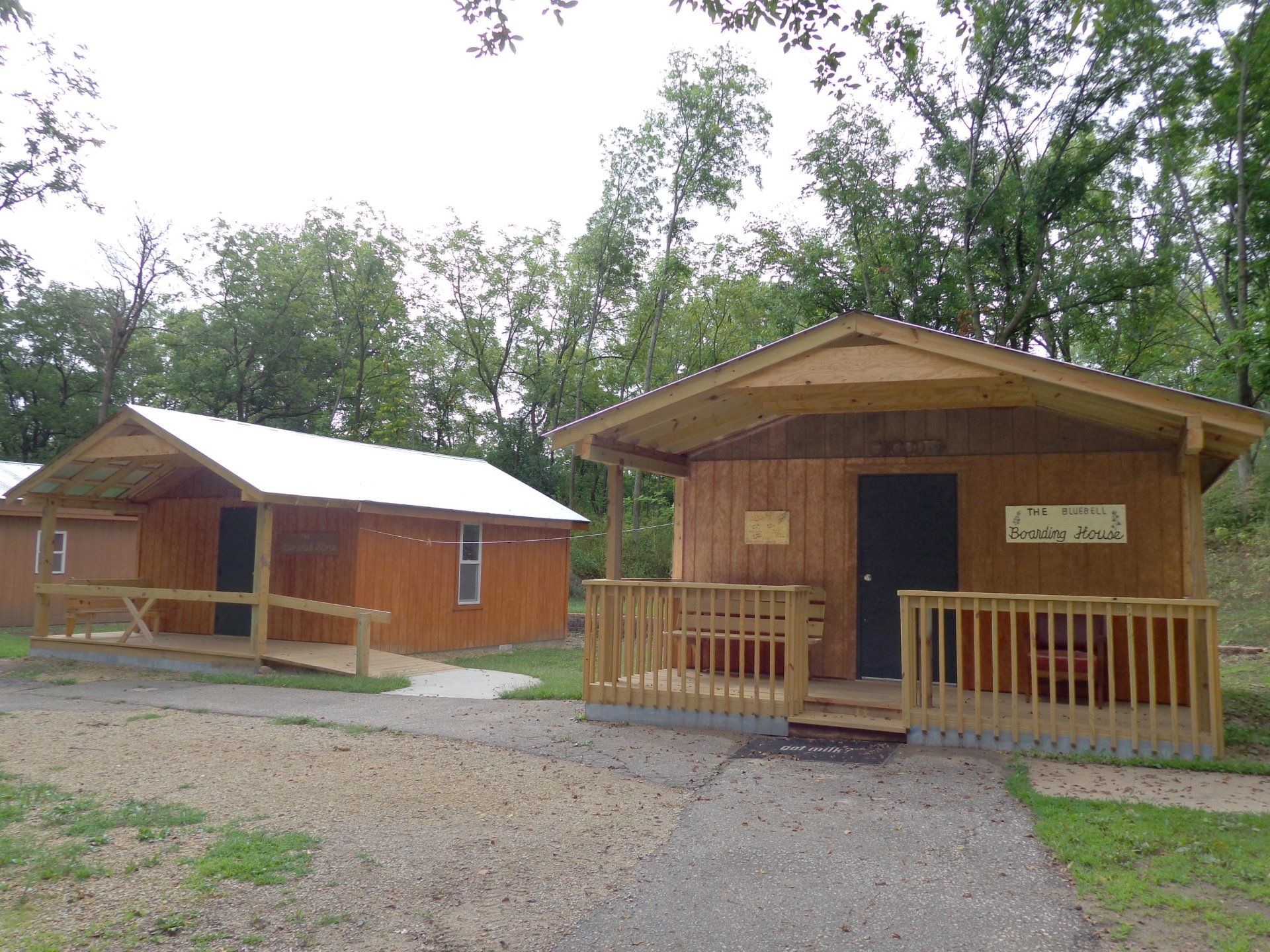 Three family-style accessible cabins with kitchen and bathroom sleep 10-13 people.